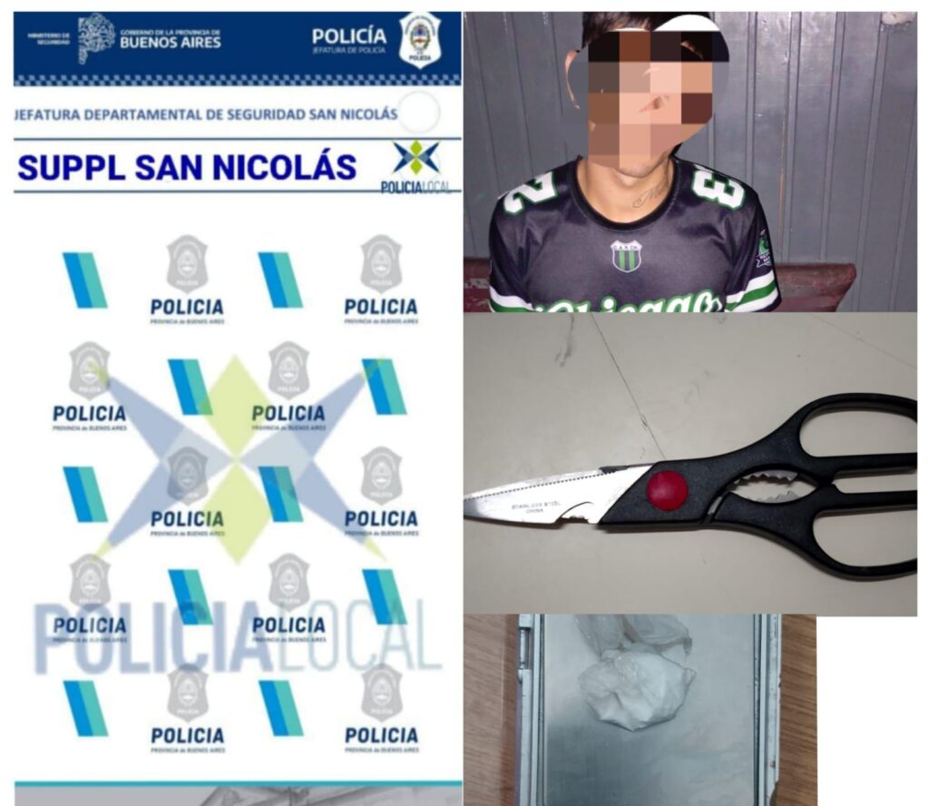 En Av. Morteo y Pellegrini, UPPL aprehendió a un joven de 21 años. Durante el procedimiento se le incautó un envoltorio con cocaína y, según el parte, se resistió mediante golpes y amenazas, llegando a esgrimir una tijera. El personal policial resultó ileso. Interviene UFI N° 6, que dispuso notificación de art. 60 y que permanezca alojado.