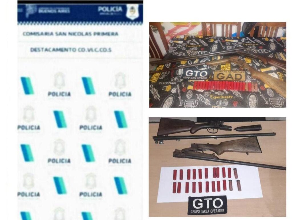 En el lugar se secuestraron dos escopetas calibre 16, una de ellas con pedido de secuestro activo por una causa de robo agravado ocurrida en Villa Ramallo. Además, se concretó la aprehensión del principal sospechoso, quien quedó a disposición de la UFI N° 6.