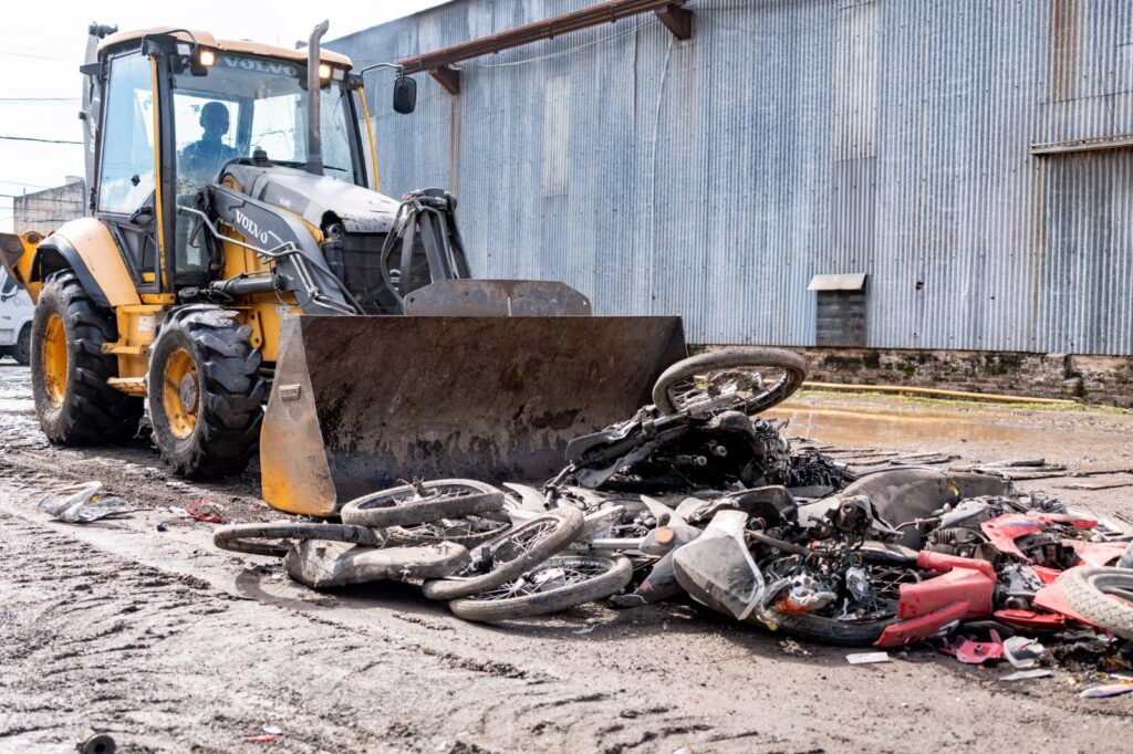 La Municipalidad de San Nicolás llevó adelante un nuevo proceso de compactación de más de 100 motos que fueron secuestradas en distintos operativos de control realizados en la ciudad, incluyendo el del último 11 de abril en la Costanera.